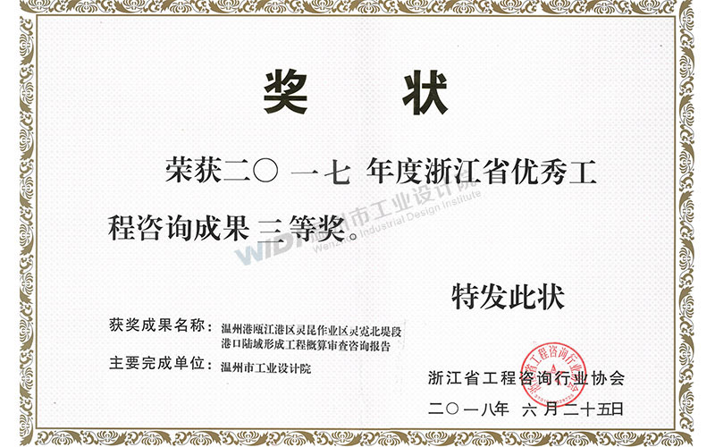 溫州港甌江港區(qū)靈昆作業(yè)區(qū)靈霓北堤段港口陸域形成工程概算審查咨詢(xún)報(bào)告 省優(yōu)秀工程咨詢(xún)成果三等獎(jiǎng)
