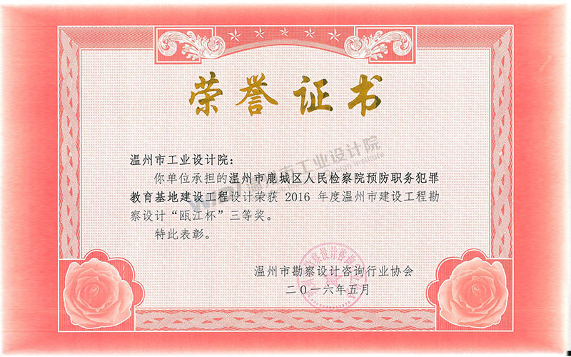 溫州市鹿城區(qū)人民檢察院預(yù)防職務(wù)犯罪教育基地建設(shè)工程 甌江杯三等獎(jiǎng)