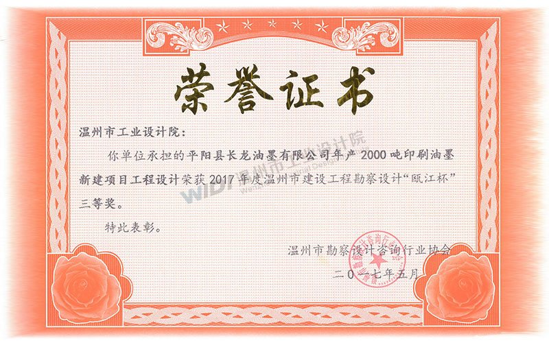 平陽(yáng)縣長(zhǎng)龍油墨有限公司年產(chǎn)2000噸印刷油墨新建項(xiàng)目工程設(shè)計(jì) 甌江杯三等獎(jiǎng)