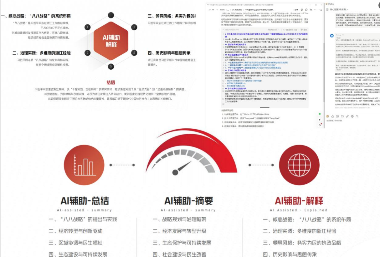通過AI輔助學(xué)習(xí)形成的理論成果,將現(xiàn)代科技手段與理論學(xué)習(xí)深度融合的創(chuàng)新模式,顯著提升了理論學(xué)習(xí)效率,提高了知識轉(zhuǎn)化應(yīng)用率。該創(chuàng)新學(xué)習(xí)方法得到全體黨員的高度認(rèn)可,有效激發(fā)了黨組織理論學(xué)習(xí)的內(nèi)生動力。支部書記吳家強(qiáng)在總結(jié)中指出,此次探索的“AI+理論學(xué)習(xí)”新模式,不僅增強(qiáng)了理論學(xué)習(xí)的趣味性和互動性,還通過智能化的手段,實現(xiàn)了個性化學(xué)習(xí)路徑的規(guī)劃,讓每個黨員都能根據(jù)自身需求和能力水平進(jìn)行有針對性的學(xué)習(xí),為新時代黨員教育提供了可復(fù)制、可推廣的示范樣本,