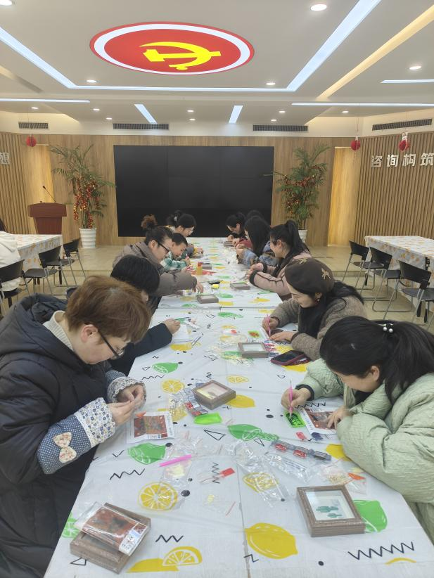活動現(xiàn)場,布置得溫馨且喜慶,燈籠高掛、春聯(lián)映目、年花簇?fù)恚幪幯笠缰鴿庥舻墓?jié)日氣息。全體員工熱情響應(yīng),踴躍參加?;顒右潦?,大家有序簽到并領(lǐng)取了手工DIY所需的材料。此次活動準(zhǔn)備了多個富有傳統(tǒng)文化韻味的手工項目。福字 DIY 鉆石貼區(qū),員工們專注地將一顆顆閃耀的鉆石鑲嵌在特制模板上,在細(xì)致操作中,寓意吉祥的福字逐漸成型;“家和萬事興”“百福圖” 數(shù)字油畫 DIY 區(qū)域,大家依據(jù)數(shù)字標(biāo)識,用畫筆為畫布填充色彩,每一筆都飽含著對美好生活的期許。木版年畫拓印手工 DIY 處,員工們先將宣紙輕柔覆蓋在刻有精美圖案的木版上,再用蘸滿顏料的刷子均勻刷過紙面,隨后小心翼翼地揭開宣紙,一幅幅承載著歷史記憶與美好寓意的木版年畫便躍然紙上 。經(jīng)過一個多小時的創(chuàng)作,一幅幅精美的手工作品陸續(xù)誕生。這些作品不僅展示了員工們的才華和技藝,更凝聚了大家的智慧和汗水。